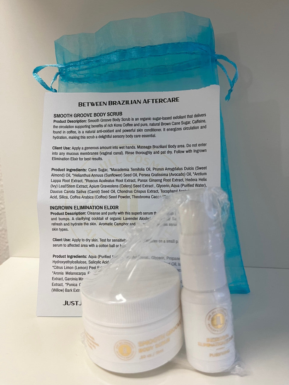 Client Use: Apply a generous amount into wet hands. Massage Brazilian/ Body area. Do not enter into any mucous membranes (vaginal canal). Rinse thoroughly and pat dry. Follow with Ingrown Elimination Elixir for best results.